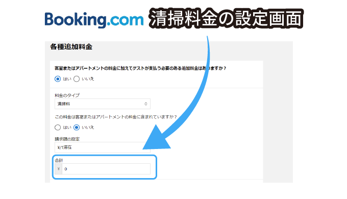 ホストとしてOTA(宿泊予約サイト)にお部屋を登録する際、宿泊料金とは別に掃除料金も自由に設定することが可能です。