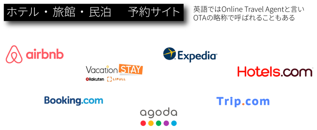民泊と聞いてAirbnbをイメージする方が多いとは思います。Airbnbはあくまでも民泊サービスの一つで、Airbnb以外にも楽天やBooking.com、Expedia、Agoda、trip.comなど有名なホテル予約サイトにも民泊物件を掲載することが可能です。