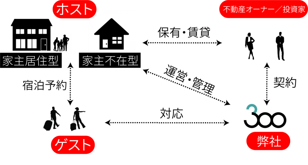 民泊ではお部屋を貸し出す人をホストと呼び、借りる人をゲストと呼びます。