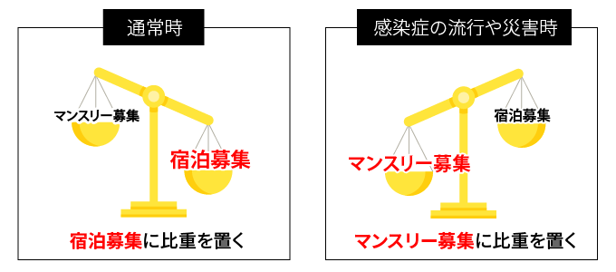 感染症の流行や災害リスクに備え、宿泊の募集と同時にマンスリー賃貸として募集できる体制を整えておくことが重要なポイントになります。