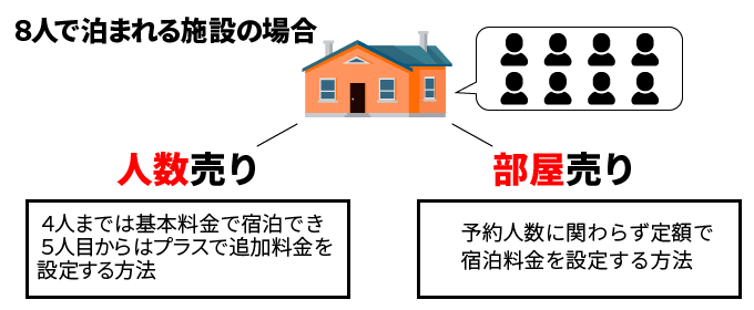 そもそも宿泊施設の料金設定において、人数によって料金が変わるか、人数にかかわらず定額で貸し出すかどちらかになります。